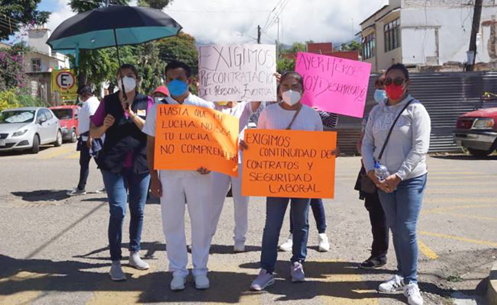 Se movilizan trabajadores despedidos de salud